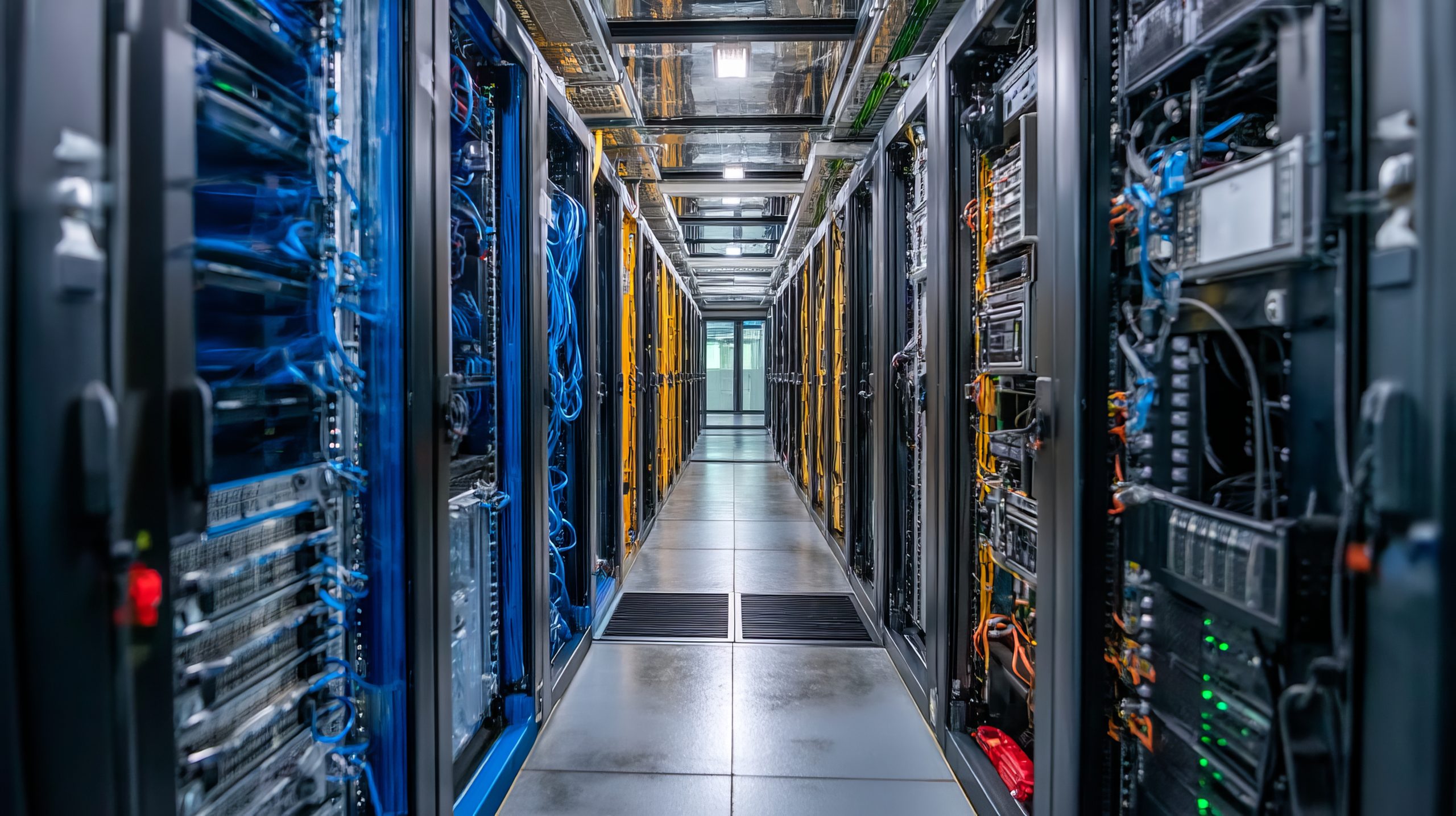 Modern data center interior with server racks and network equipment in a professional environment January 13, 2026
